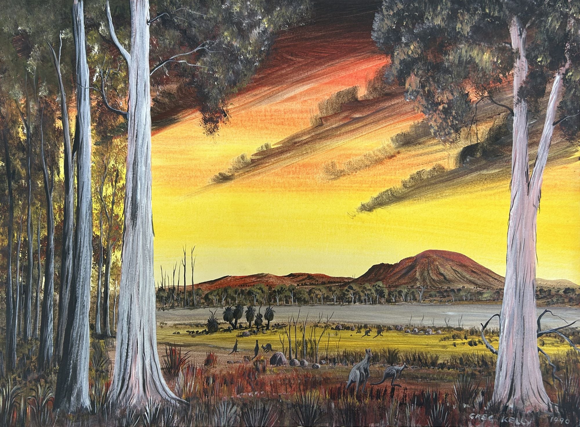Greg Kelly (Carrolup School)Twilight, Stirling Ranges Signed and dated 1990 lower right Watercolour and gouache 50.5 x 70.5cm (image size) Framed